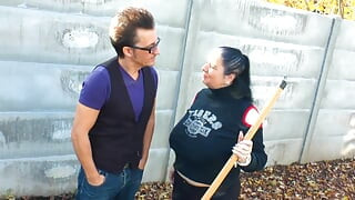 차에서 두꺼운 자지를 다루는 날씬한 갈색 머리 십대